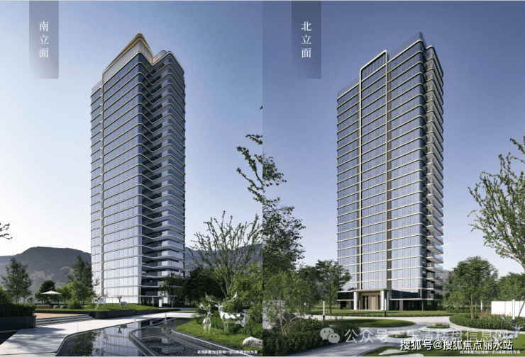 ◎流金曲面:以曲面环幕构建高层立面,金属铝板搭配大面玻璃造就270°环幕视野,灵动香槟金线条配以灰白铝板迭新审美,营造城市美学标杆。