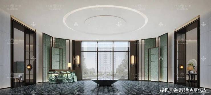大气的酒店式落客空间约150㎡,加上约9米高、约30米宽的大门,将归家的仪式感拉满。