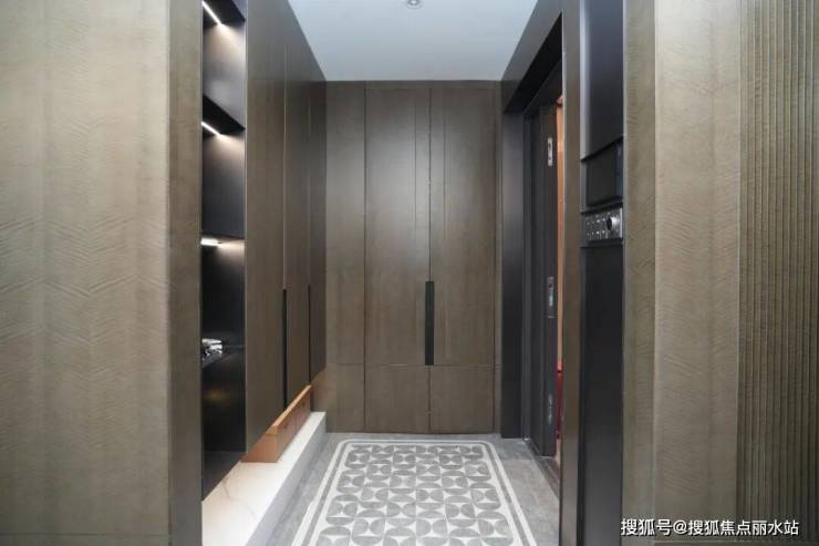 玄关至餐厅墙面及户内门,大面积选择了多用于奢华酒店、千万级豪宅的影木饰面通贴,高级感满满。