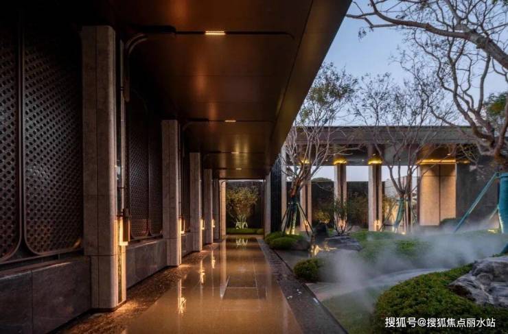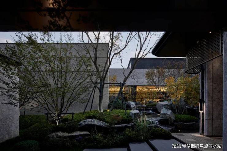 中庭是一方300㎡水院空间,山石水瀑,绿岛漂浮,迎面而来的度假感让人在沉浸中逐渐放松身心。