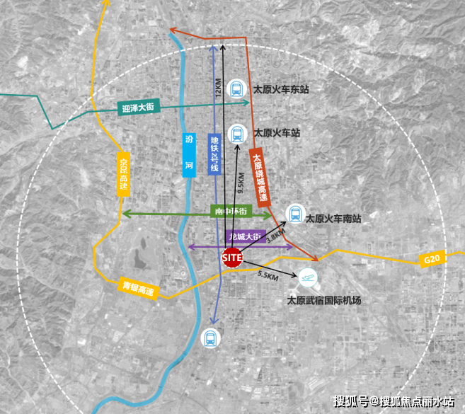 保利龙城天珺位于太原市南部,区位优越,距离太原南站3.8km、武宿国际机场5.5km、晋阳湖5.5km;西侧紧邻地铁2号线与汾河,临近龙城南街、龙城大街、红寺西路和坞城南路等主次干道,路网成熟;5km范围内有万达广场、山西白求恩医院、山西农业大学等配套。
