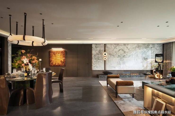 约50㎡餐客厅空间,豁然之境,营造奢华社交场域。