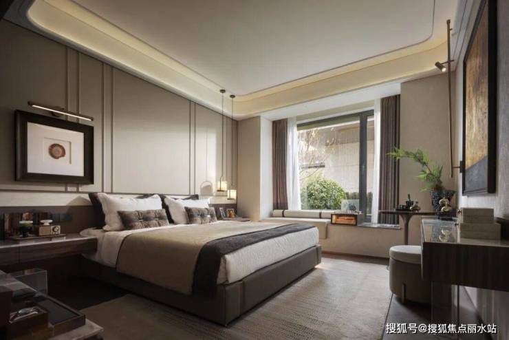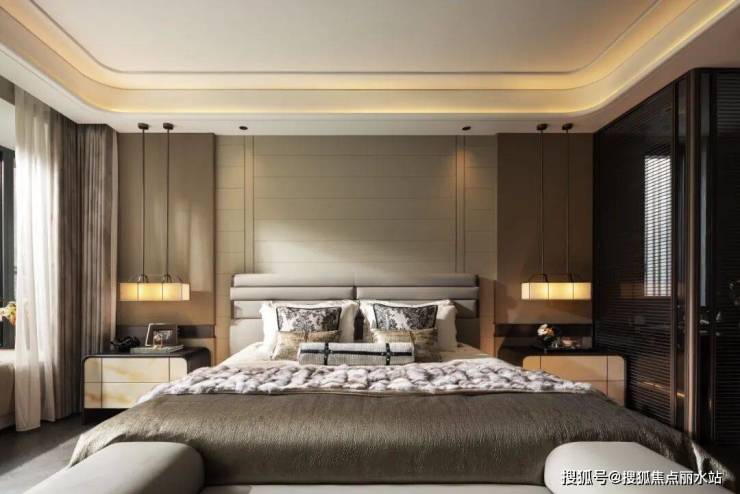 主卧270°转角飘窗设计,臻配奢华衣帽间,品位不凡私域。
