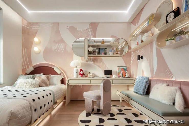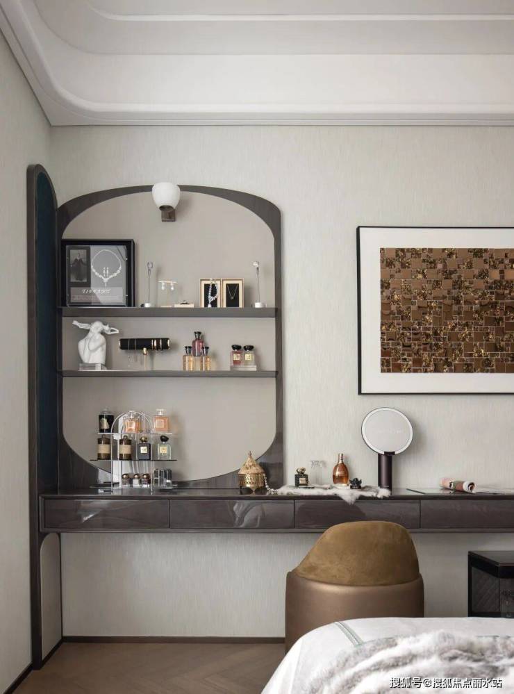 卧室设计注重私密与舒适,采用柔和的色调与高级面料,营造出宁静致远的休憩空间。床头背景墙以艺术壁纸或定制壁画装饰,每一幅作品都讲述着一个关于美的故事。定制的鎏金边框镜,不仅拓宽了视觉空间,也成为了房间内的一处亮点,彰显主人的独特品味。