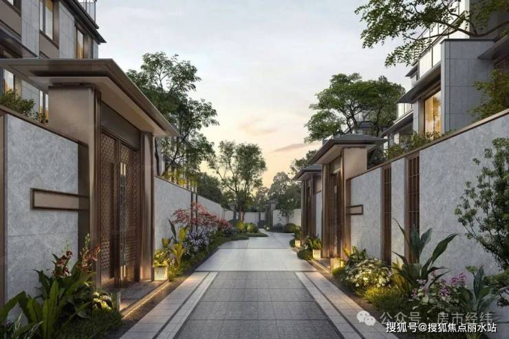 示范区在空间体验上以中式园林为载体,结合现代设计手法,打造归家园林五重礼序。