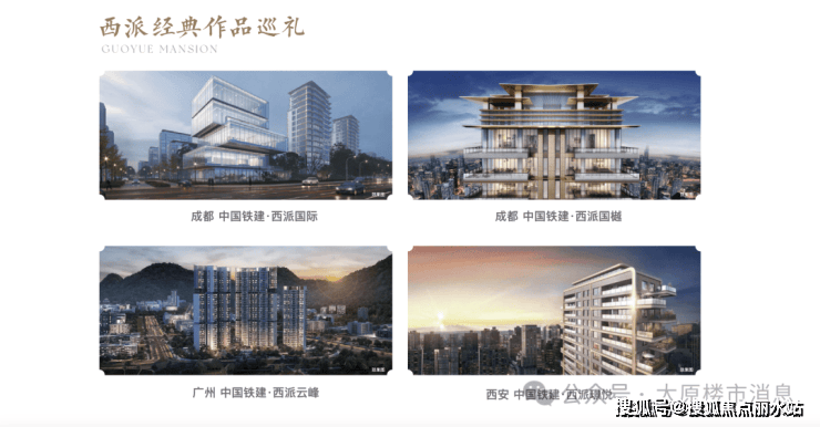 中国铁建以高净值人群居住需求为原点,选址于城市价值高地,于太原打造西派系作品——中国铁建·国樾府,依托千年汾河文脉,匠筑立序太原中轴之上的时代作品,为千年龙城,再造西派传奇。