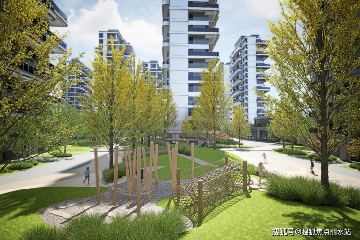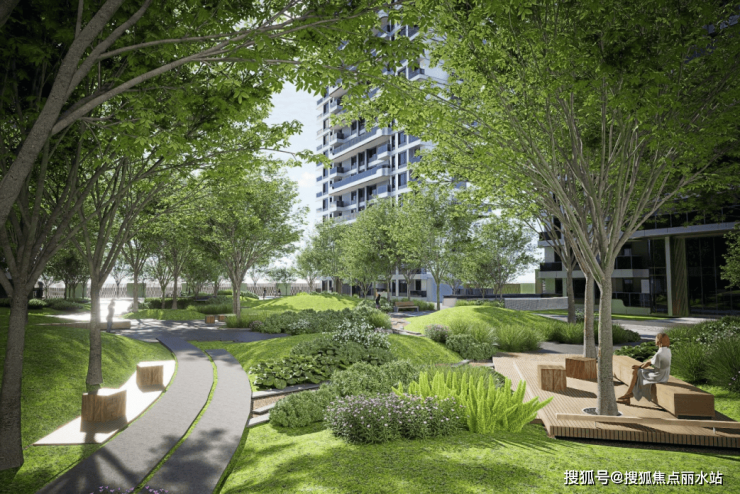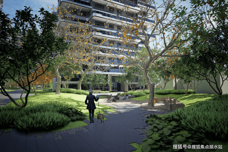 规划设计:项目规划布置20栋高层住宅,层数在12F-17F之间。楼宇采用错位布局的方式,形成"城市森林岛屿"的视觉效果;在地块内部围合1000㎡中心景观花园,同时融入苏州园林造景手法,形成户户享有立体庭院景观,实现"推窗见绿"的生活体验。