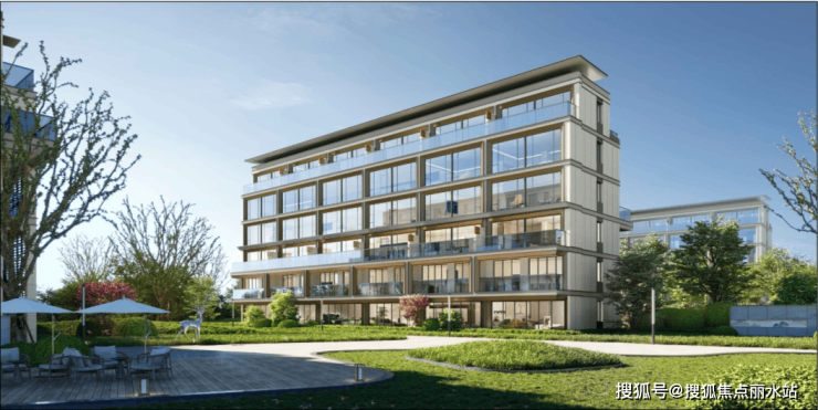 从效果图上看,地块整体布局规整方正,南北两侧均有主出入口,小高层立面效果比较常规,但低层建筑部分窗墙比很高,质感高级,且带有超大面积的花园阳台。
