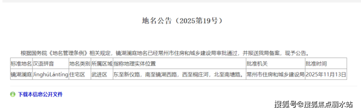 近期,根据常州住建局官网发布的信息显示,位于武进区东至新仪路,南至镜湖西路,西至桐庄河,北至南塘路的项目案名审批通过,定为镜湖澜庭。