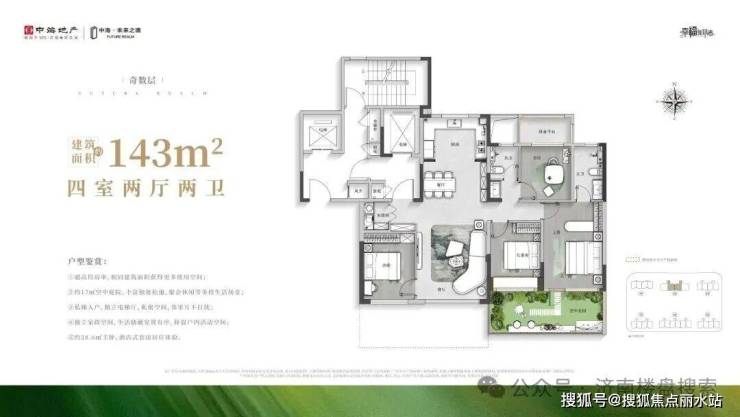 项目规划6栋15-17层小高层,精装,415套,户型为118平、143平,都规划为精装四代宅。