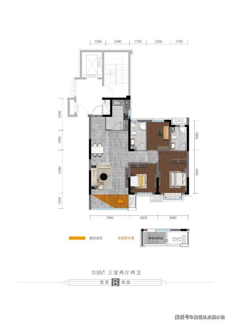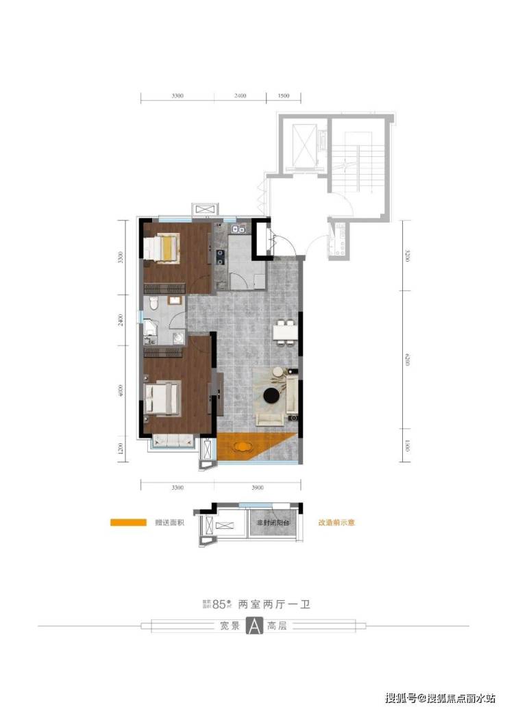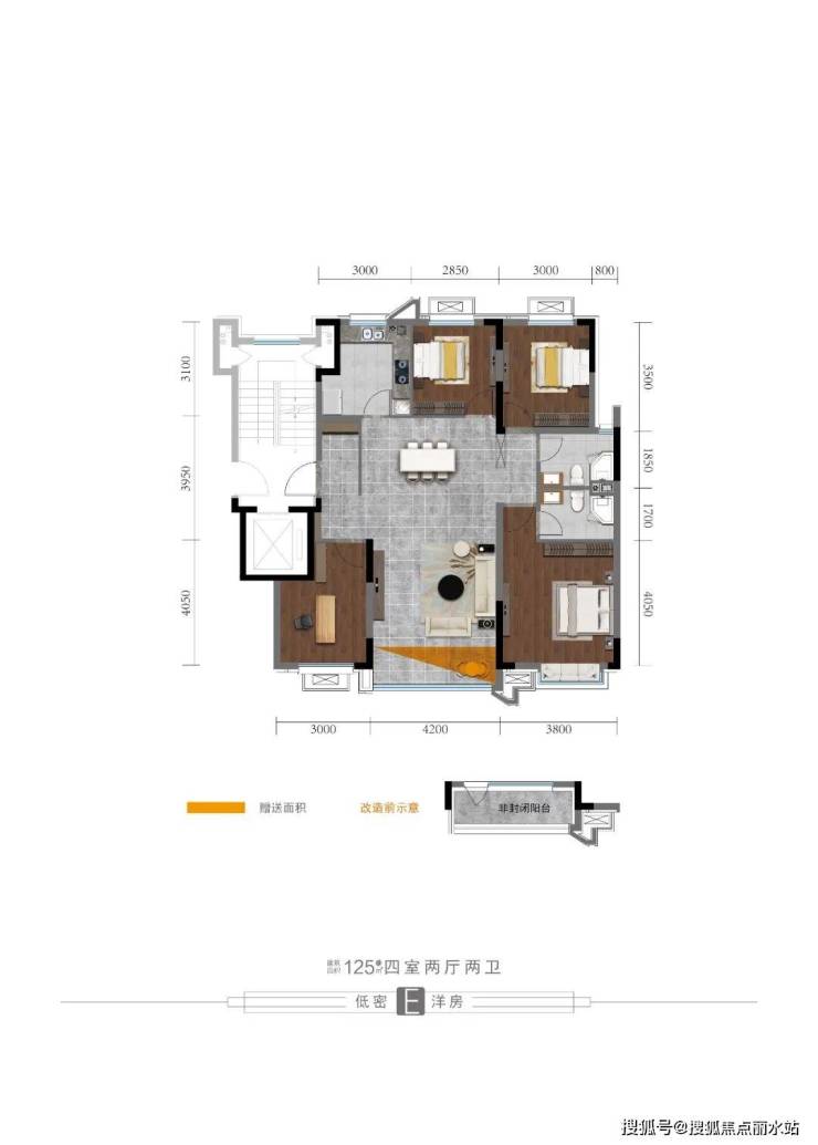 总价:小高层9500元/㎡;洋房11500元/㎡