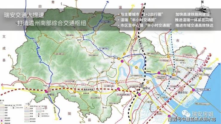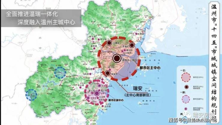 1)全面推进温瑞一体化,全域统筹融入温州都市区建设,以瑞安中心城区为桥头堡向北融入温州大都市区主中心,将瑞安整体打造成为温州都市区主中心南部新区。