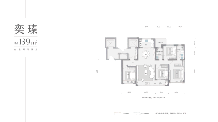 建面约139㎡户型软装效果图,非交付标准,实际以交付为准