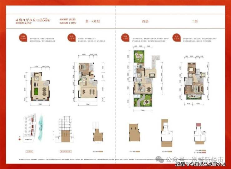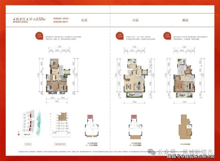 🔻下叠155㎡ 4房2厅6卫(拓展面积263㎡,实用面积约418㎡),边套花园约100㎡,中间套花园约55㎡(13-16-17-18栋)