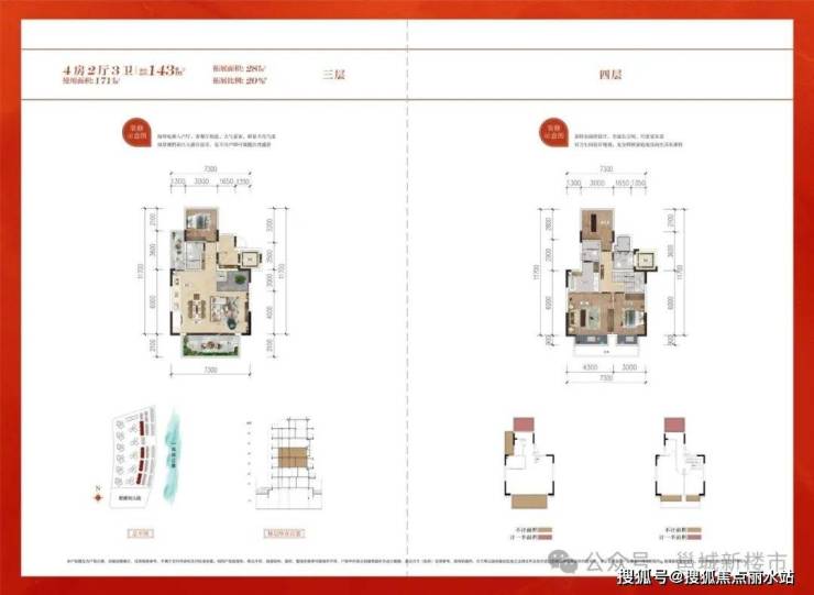 中叠143㎡ 4房2厅3卫(拓展面积28㎡,实用面积约171㎡)(13-16-17-18栋)