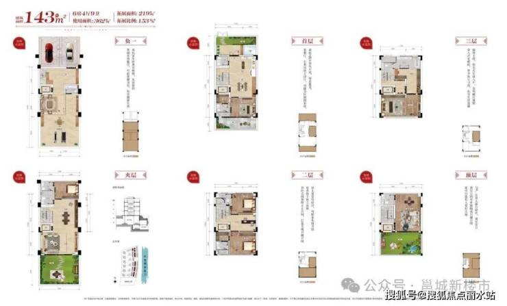【在售别墅产品】143/155㎡叠墅、143㎡联排别墅、228m² 头排别墅。