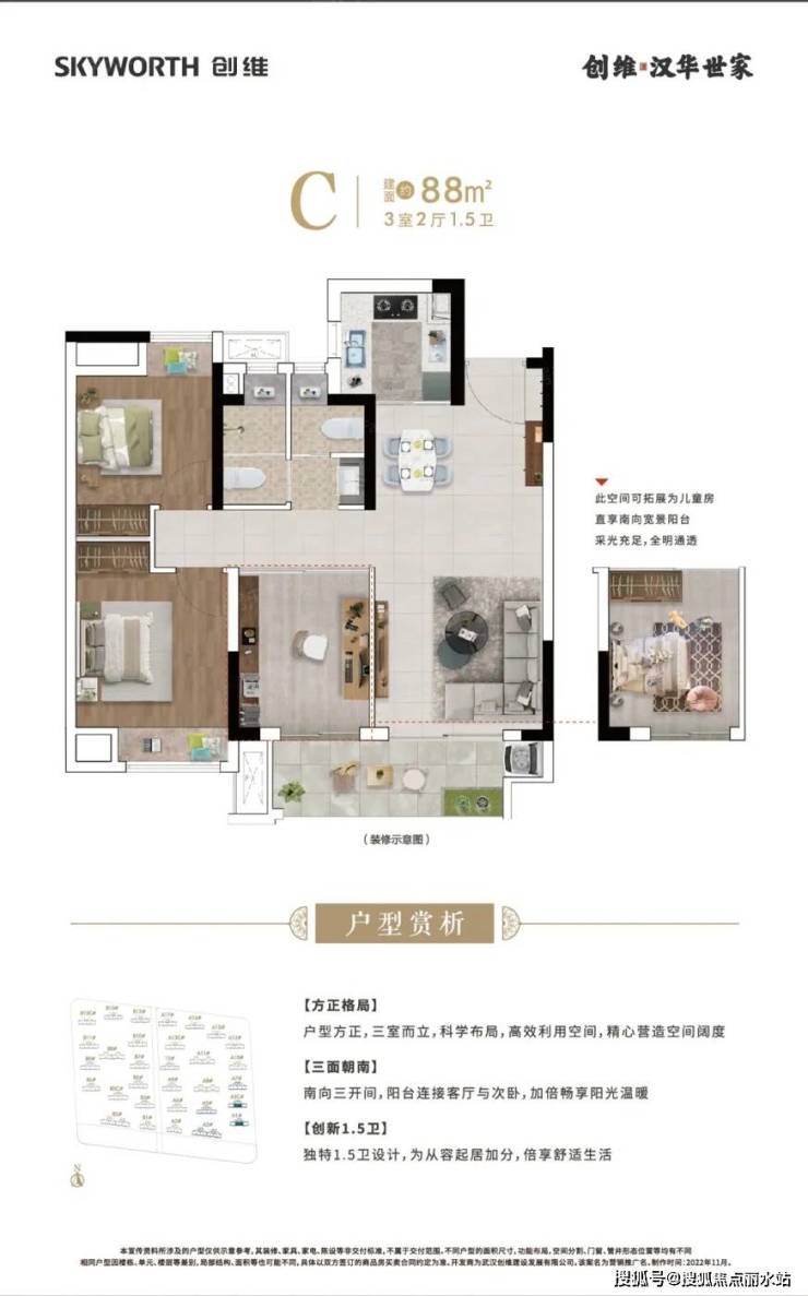 创维·汉华世家 平层户型·建面/88㎡