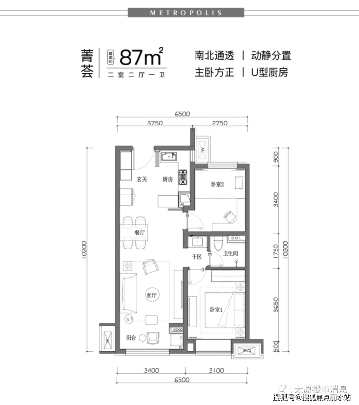 南北通透 | 主卧方正 | 动静分离 | U形厨房