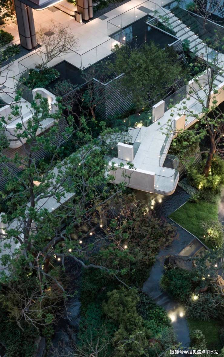项目打破一般豪宅“平面绿化”的局限,通过高差设计与植被分层,打造地上+地下+空中的“立体森系居境”,让自然在空间中“折叠生长”。