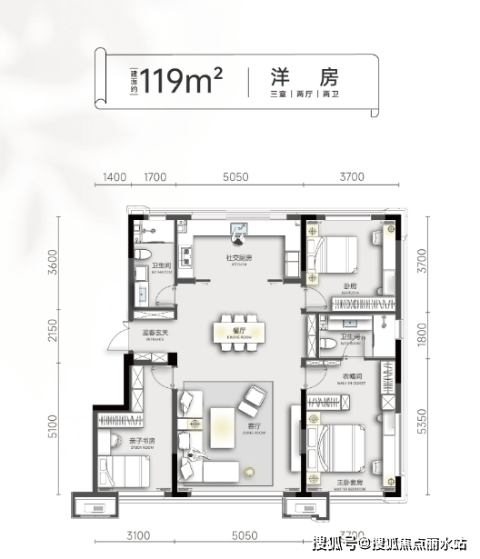 在新品119平三室两厅两卫的洋房户型中,亮点设计颇多。南北通透的方正户型,而且是非常舒适合理的“三叶草”格局,三卧室分别位于空间两侧,让主人起居互不打扰;约11.85米的南向面宽,将更多阳光美景收纳,加之约5.05米的南向宽厅,可拥享巨幕瞰景视野,能够收藏园林四时风景;超大的采光面,让室内光线更足;十足的大开间、大宽厅,使得这款户型更加“有颜有料”!