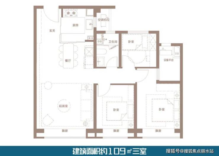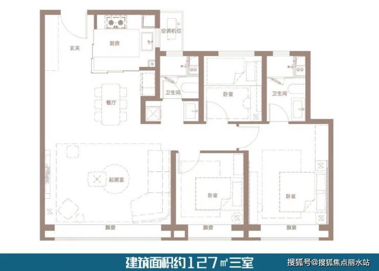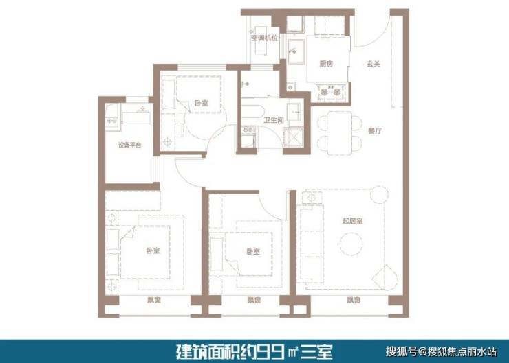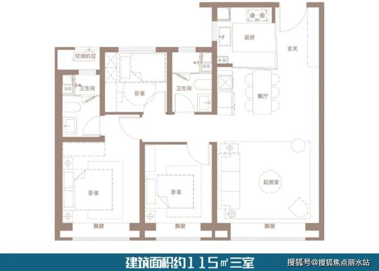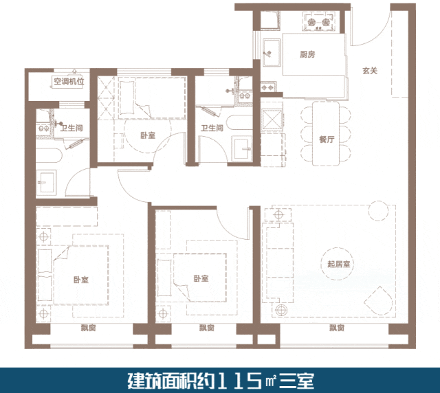 以建筑面积115㎡三室为例,餐厨同宽,均为约4.3米轴线开间,这能达到一个很好的空间效果。