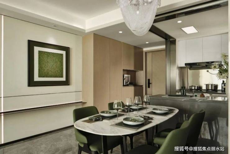 它的基本逻辑,利用充分的餐厅开间,把冰箱从厨房移出,利用吊轨玻璃推拉门实现厨房的可开可合。