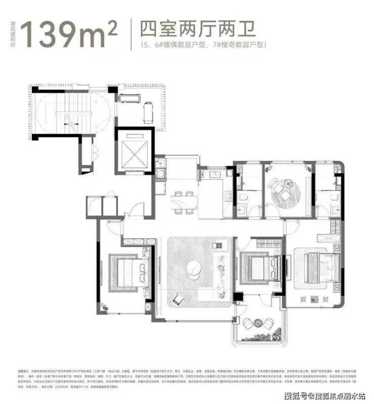 此次加推的7号楼,建面约139㎡四房,总价约720万起,功能性拉满。客厅约5米开间,南北双阳台,自带方形露台,实用性极强;四间卧室空间尺度感俱佳,整体布局均衡合理,实际使用率高达95%。同时,从河西中部的储备项目和地块来看,未来各个项目还是会往超大户型去做,像这样实用又阔绰的四房户型,只会越来越少。