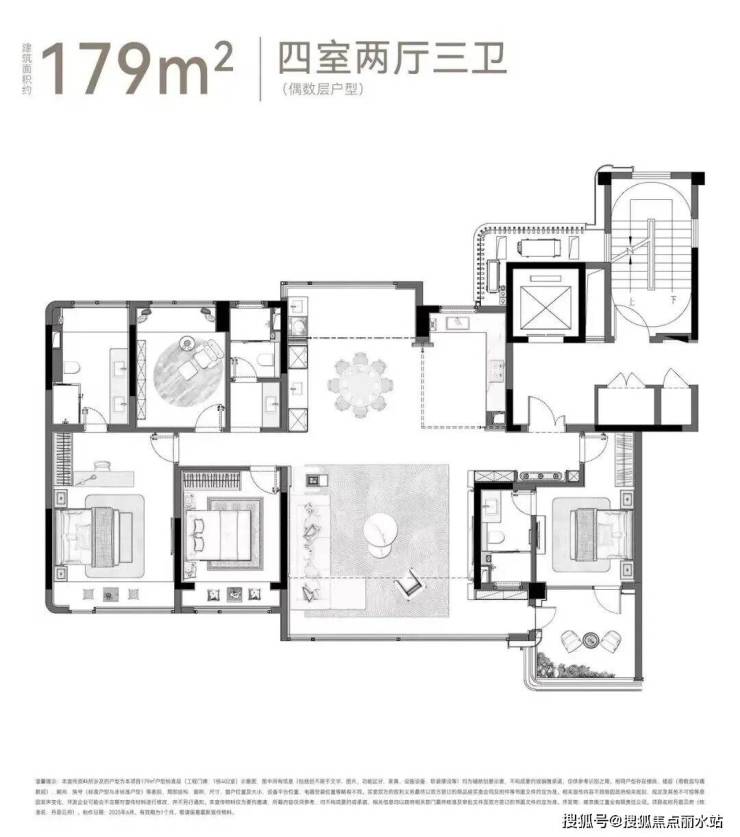 此外,项目还有3号楼少量建面约179㎡户型在售,采用双套房设计,空间尺度与功能配置均可媲美市面纯粹大平层。一梯一户的私密性,约6米开间的客厅搭配南北双阳台,尺度、视野、通透全都有了。开合自如的厨房,不仅烹饪更行云流水,还自带社交功能。