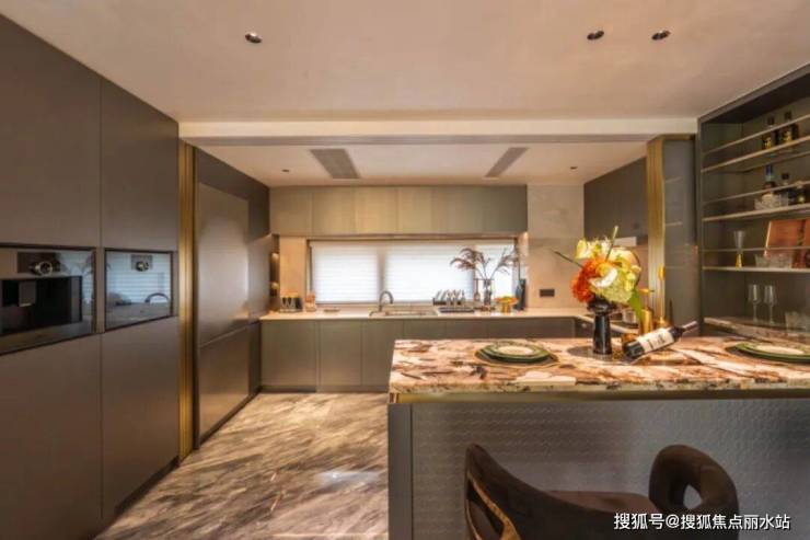 更令人惊艳的是背景墙铺装潘多拉奢石、地面铺装佛罗伦萨灰奢石、主卧卫生间铺装鱼肚白大理石,让业主在日常起居中,就能感受到触手可及的奢华与雅致。