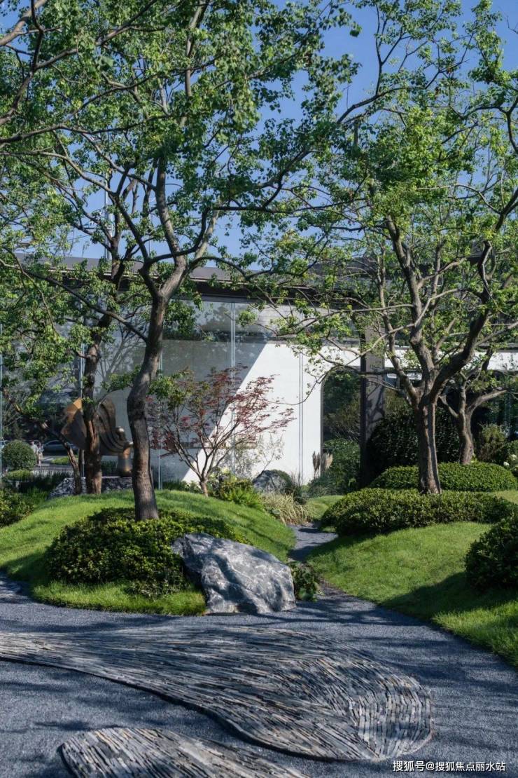 穿过售楼处,到达后场,便是最开始透过府门玻璃幕墙看到的绿林浮岛,进入这片自由森林,光影的变化带来树影的婀娜,去看、去听、去感受光影与自然。