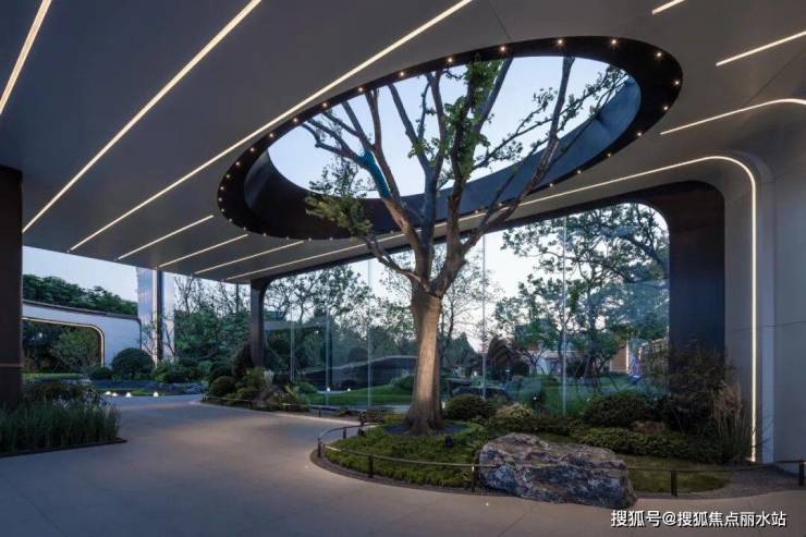 延续传统金茂府的营造策略及体验序列并进行升级,打造从尊享停车、迎宾广场、时空旋转门、夹景转换空间、仪式水景、后场花园到活动草坪的完整闭环。