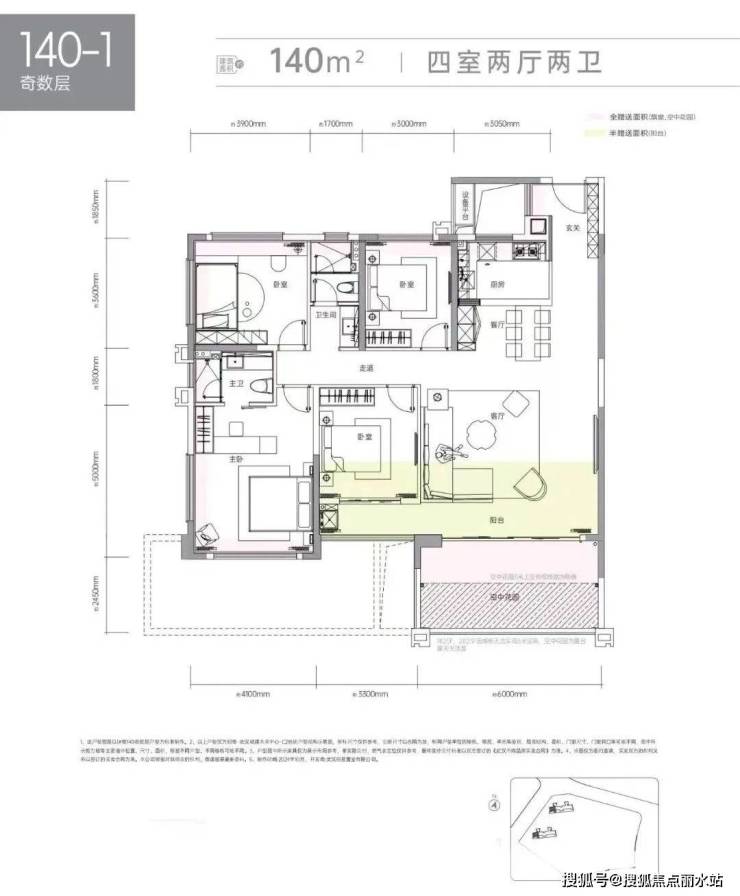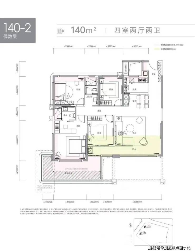 此次揽境(C2地块)户型分为了奇偶层设计,6米挑高大露台,空中花园超多赠送,综合建筑得房率约127-132%。这也是目前所有四代高层产品中得房率最高的一个。