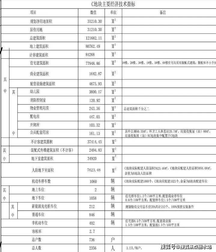 二期C地块总建面约121682.11平,计容建面约84268平,容积率约2.7。规划6栋住宅,全部1个单元,两梯四户,共736户,共1060个机动车停车位,车位比1:1.4。