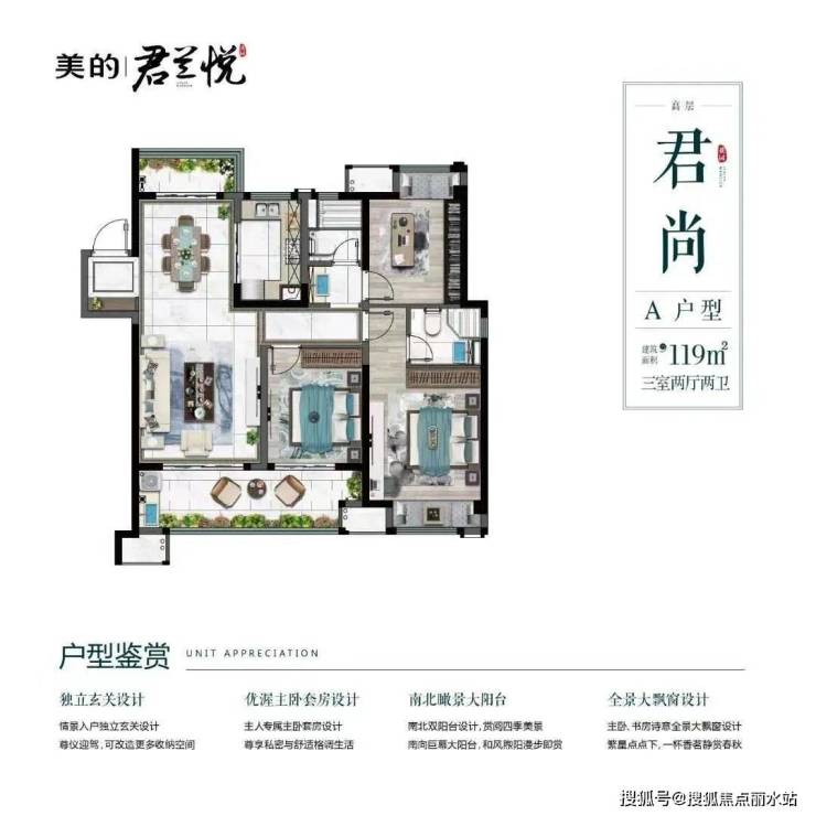 建面约119㎡的户型更具改善属性,南北双阳台,南向双开间阳台、主卧全景大飘窗设计,独立玄关设计,注定能够享受更明媚,更舒适的生活!