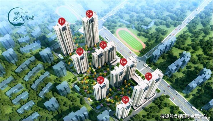 城投秀水青城位于建设十一路青宜居车站旁,净用地面积56027.14平方米,计容建筑面积202778.36平方米,其中商品住宅建筑面积181986.18平方米,公租房建筑面积11485.31平方米,商业建筑面积5664.41平方米,幼儿园面积2292.05平方米,总户数1823户,其中商品房户数1594户,公租房229户,容积率为3.62,包含停车位2360个。