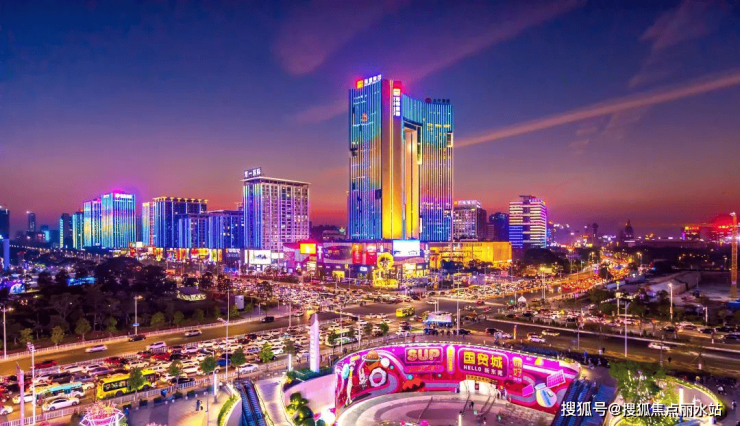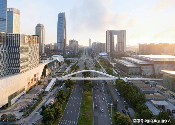 西面,余晖勾勒城市黄金轮廓,俯瞰川流不息的东莞大道,城市华灯初上,代表东莞城市的精气神与繁盛。
