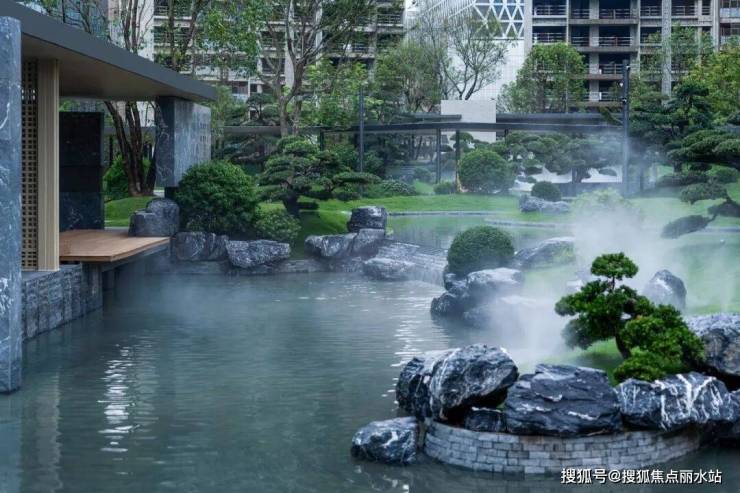 为了增强园林的灵动生命力,还打造有约4900平水系,将黄旗山景和内部园林互相辉映。