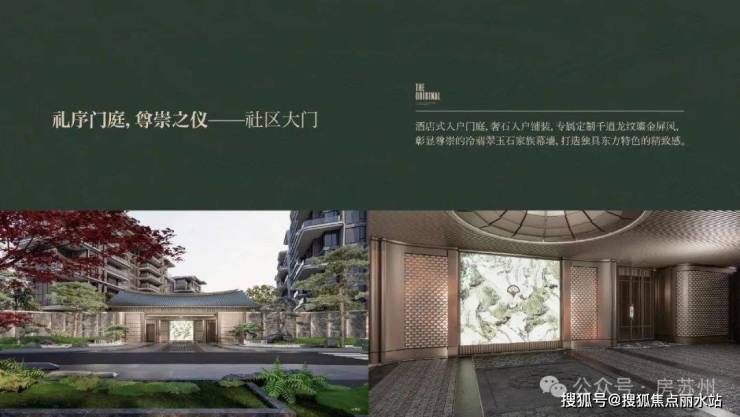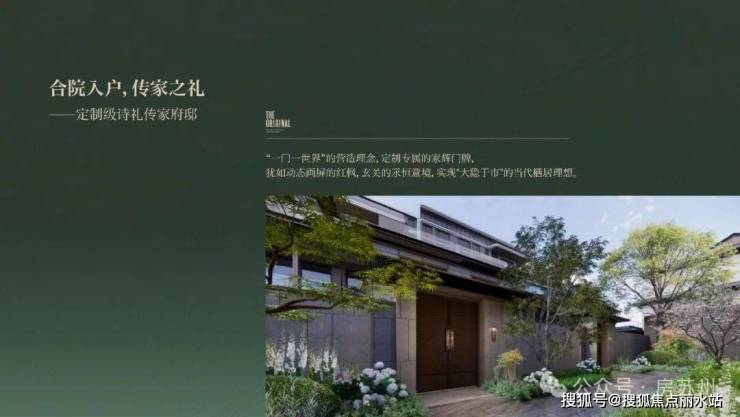 书院文化是吴中的文化基因,本项目设计融合姑苏书院人文,用苏式园林手法打造向往自然山水的低密社区,不论居住或收藏传承都值得占有。整体南北分区造园,北为洋房南为合院。分三进礼仪入园:一进礼仪门厅,二进天地院落,三进生活雅院,并设九处融合了诗意东方的园景融汇于三进,打造东方礼序归家。