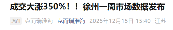 而刚刚过去的12月第二周,更是给出了一个亮眼成绩——徐州市区商品住宅成交面积,环比前一周大幅上涨了350%!