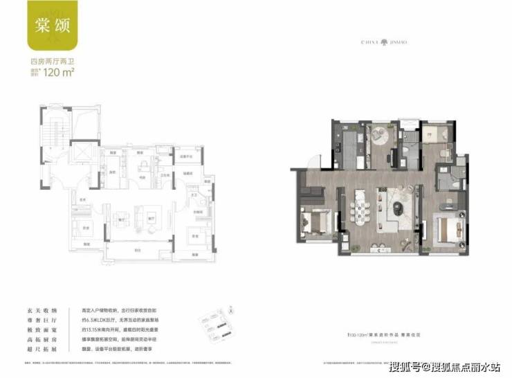 4.户型产品力突出:LDK方厅、开放式厨房+岛台、酒店式套房主卧,S墙前置预埋、精简剪力墙及窗墙障碍,高赠送空间,从玄关到厨房到卧室、卫浴、阳台,拓展出2.8万升超级空间。(以110㎡户型为例)