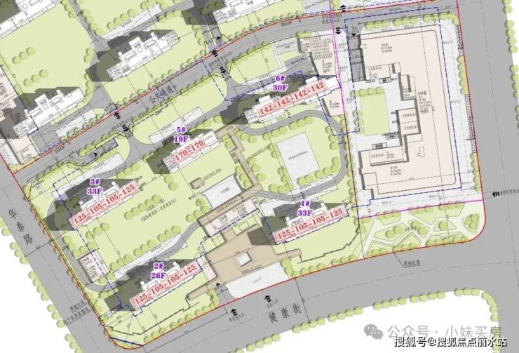A地块的1#、2#、3#都是3梯4户,边户127㎡,中间户105㎡;5#是2梯2户,176㎡户型;6#是2个单元,2梯2户,143㎡户型。