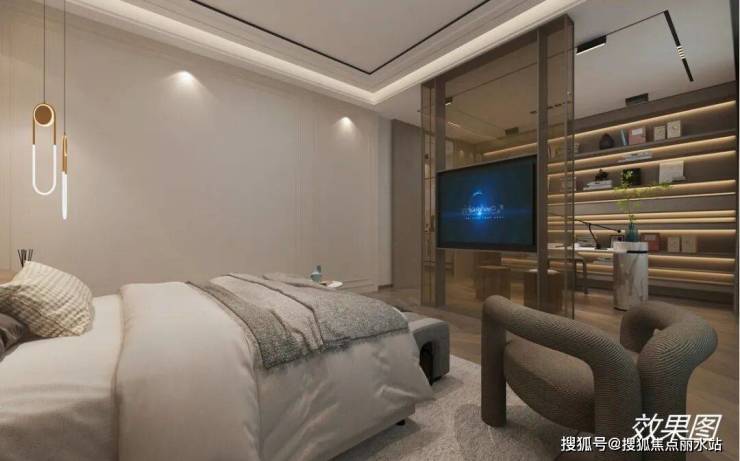 豪阔主卧套房设计,配备独立书房、独立衣帽间及独立卫浴,私享人居层峰。