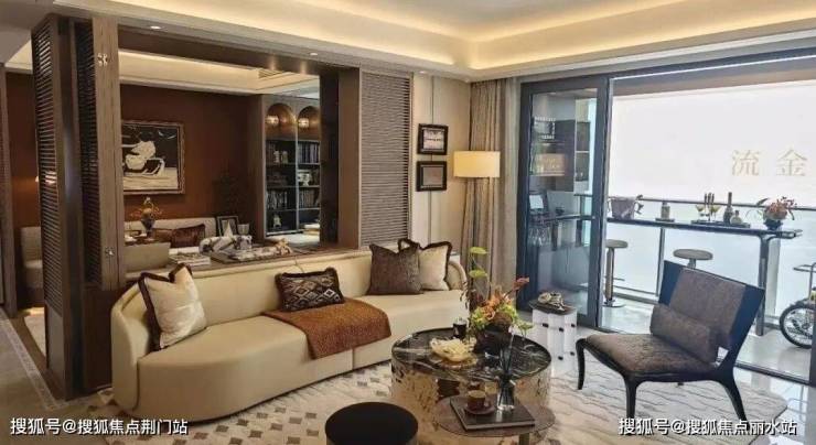 这让开发商在376户的小体量社区中,能从容配置奢华归家门头、铝板一体板+玻璃幕墙外立面、公区奢石背景墙、露天泳池、景观水系、风雨连廊以及糅合了高奢酒店元素的下沉式会所等硬件。