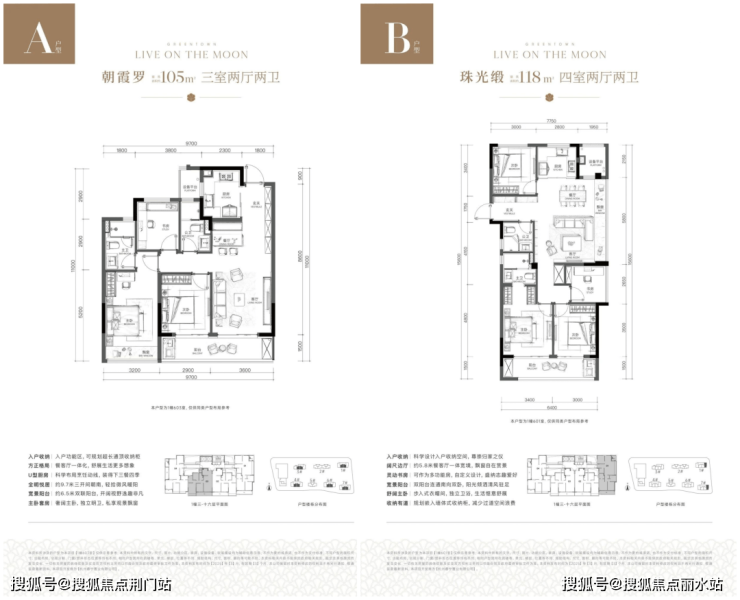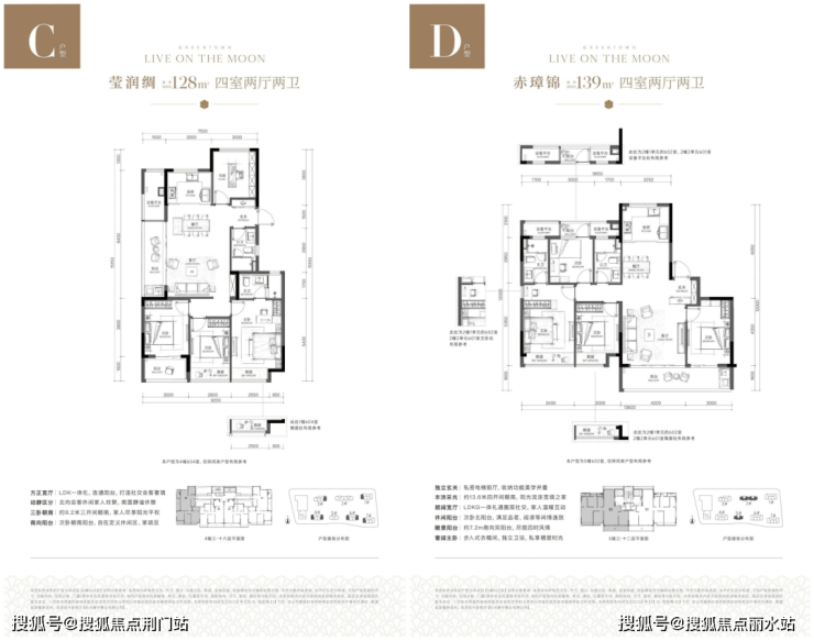宸岸栖月轩户型分105㎡、118㎡、128㎡和139㎡四种,力控总价,没有配置附近楼盘都会配置的大户型。139㎡的户型做到了两梯两户的独立电梯厅入户,对刚改还是非常友好。
