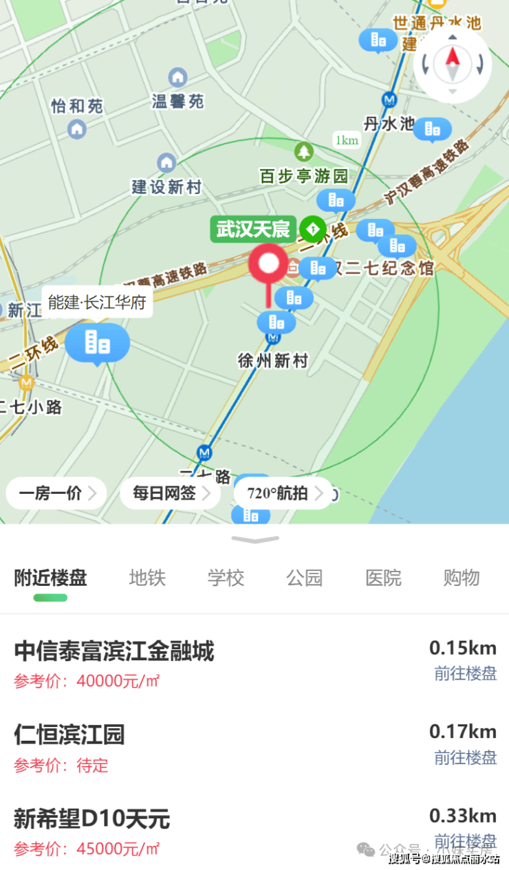虽然与二七滨江一路之隔,但毕竟不属于纯粹的二七滨江片,武汉天宸的价格肯定不能与二七滨江作对比,但与能建以及汉芯公馆的区位一致,后期大概率会参考这两盘。