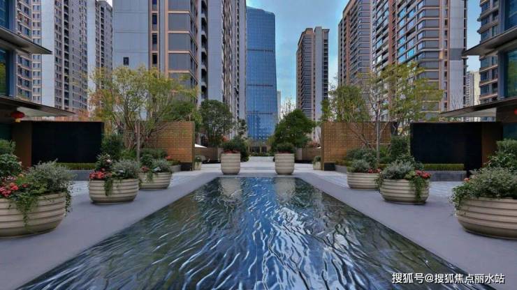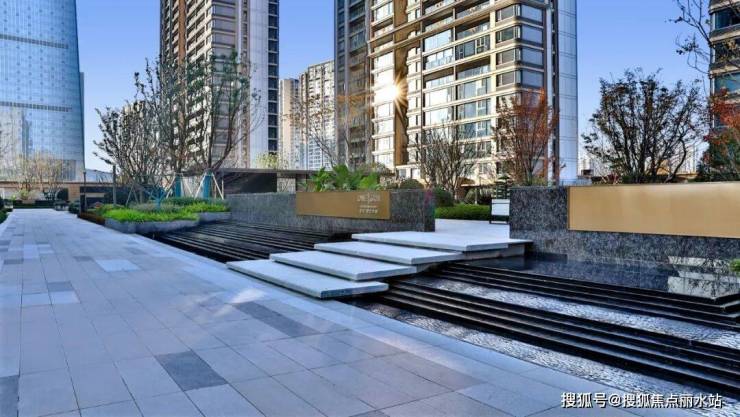 要知道,像第五大道这样的中庭硬质景观占比(水系、景墙、石材铺饰面),别说远超其它单价两三万的楼盘,哪怕和最新的塔尖顶豪楼盘相比,也是有过之而无不及。