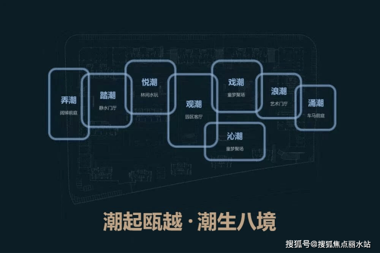 从西到东一以贯之的这条奢华中庭园林,首开给它起了个好听又非常有契合度的名字:潮生八境。