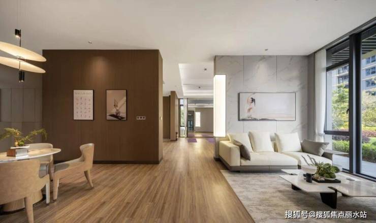 从前面阔绰前庭的一进空间、到静水门厅的二进空间,再到林间水玩的三进空间,然后我们来到了园区轴线的中心点----园区客厅: