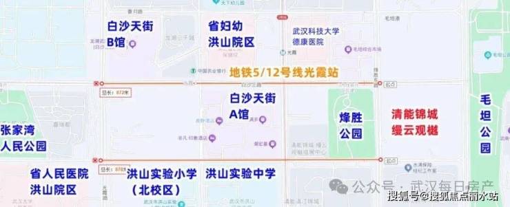 地铁5号线/12号线(在建)光霞站:光霞站是白沙洲目前仅有的双地铁换乘枢纽站,清能锦城·缦云观樾步行到该站,只有约300米左右。地铁12号线是武汉首条地铁环线,相信武汉人都知道这条地铁的强大通勤能力。
