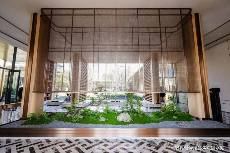 度假酒店式水景庭院,两条归家动线,风雨连廊连通中庭会客厅、入户大堂,诸多匠心独运之处,令人印象深刻。